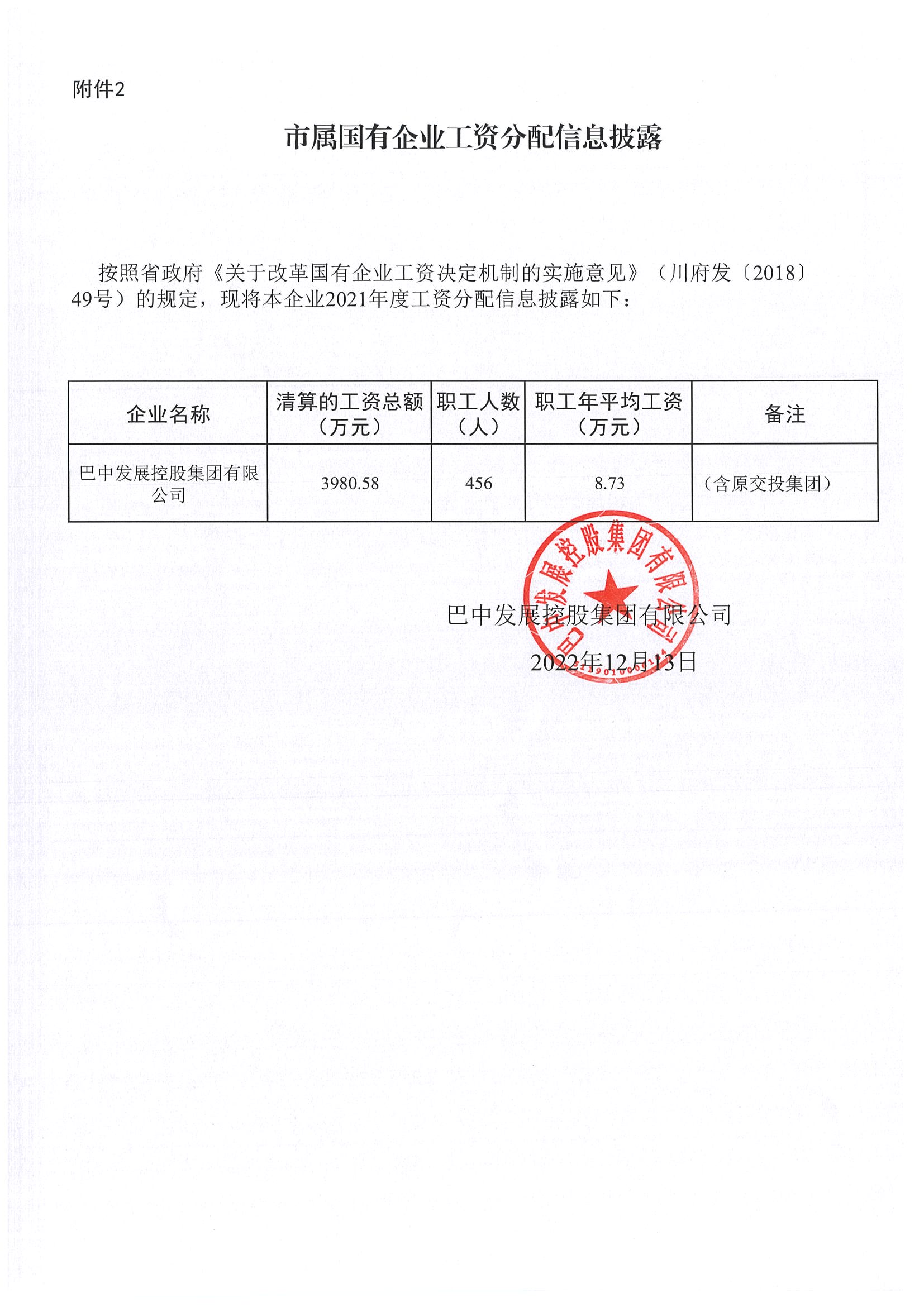 市屬國有企業(yè)工資分配信息披露
